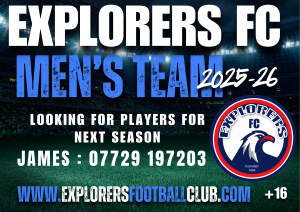 Explorers FC is looking for volunteers to help run the club If you’re interested please contact : Club Secretary : Natalie 07588-382758 Club Chairman…